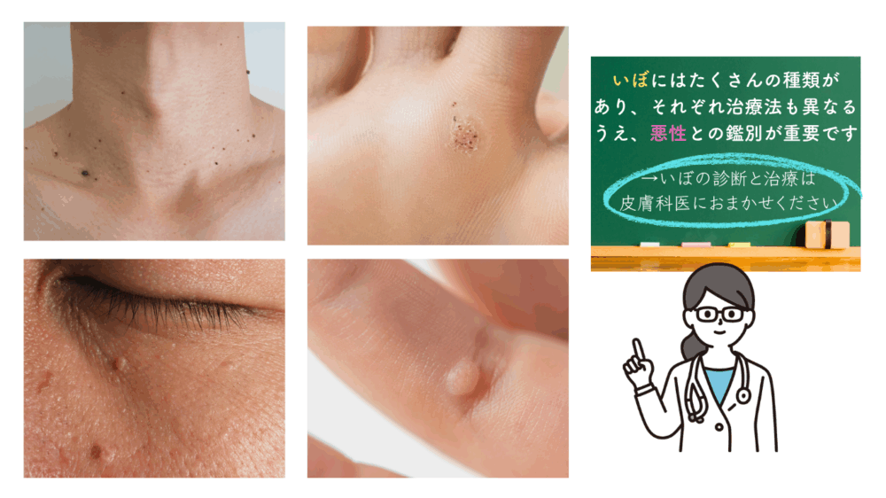 いぼはウイルス性や加齢性など、種類によって原因も治療法も異なります。